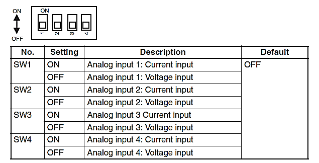 جهت تنظیم  ورودی آنالوگ به صورت ولتاژی یا جریانی از این سوییچ تنظیم استفاده می­گردد.