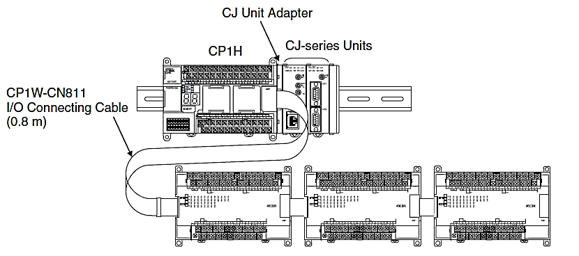 • در صورت عدم رعایــــت شرایــــــــط فوق در اتــــصال واحدهای مذکور به PLC، پیــــــــغام خطای I/O UNIT OVER ERROR خواهیم داشت. در صورتی که حداکثر تعداد واحدهای اضافه شده کمتر از 7 واحد باشد، ولی شروط مربوط به حداکثر تعداد Word های اشغال شده ورودی و خروجی ، جریان و توان رعایت نشده باشند باز هم با پیـــــغام خطای I/O UNIT OVER ERROR  مواجه خواهیم شد. اتصال همزمان اکسپنشن­های سری CP1W و CJ1W  بایستی در دو ردیف و به کمک فقط یک کابل  CP1W-CN811 به طول حداکثر 80cm انجام پذیرد.