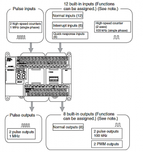 • در کلاس های X و XA امکان تعریـــف 8 ورودی و در کلاسY ، 6 ورودی امکان تعریـــــف به صورت Quick-Response را دارا می­باشند. با استفاده از این ورودی­ها خواندن ورودی­های با پهنای پالس حداقل 30میکروثانیه امکان پذیر خواهد بود. در کلاس های X و XA امکان تعریف 8 ورودی و در کلاسY ، 6 ورودی امکان تعریف به صورت Interrupt را دارا می­باشند. ورودی­های Interrupt در دو مد Direct وCounter  قابل تعریف هستند. علاوه بر خروجی­های پالس که دارای پهنای پالس ثابت بوده و در کنترل سرعت و مکان دارای کاربرد می­باشند، تعداد 2 خروجی پالس با پهنای متغیر (PWM) نیز در تمامی مدل­ها قابل تعریف می­باشند. از خروجی­های PWM در کاربردهای کنترل توان و روشنایی می­توان استفاده نمود.